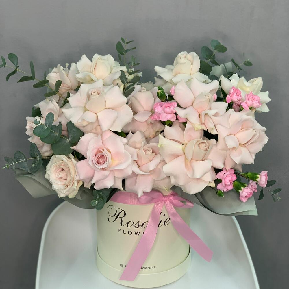 “Атлас☁️” – цветочная композиция с зефиром в деревянном ящике