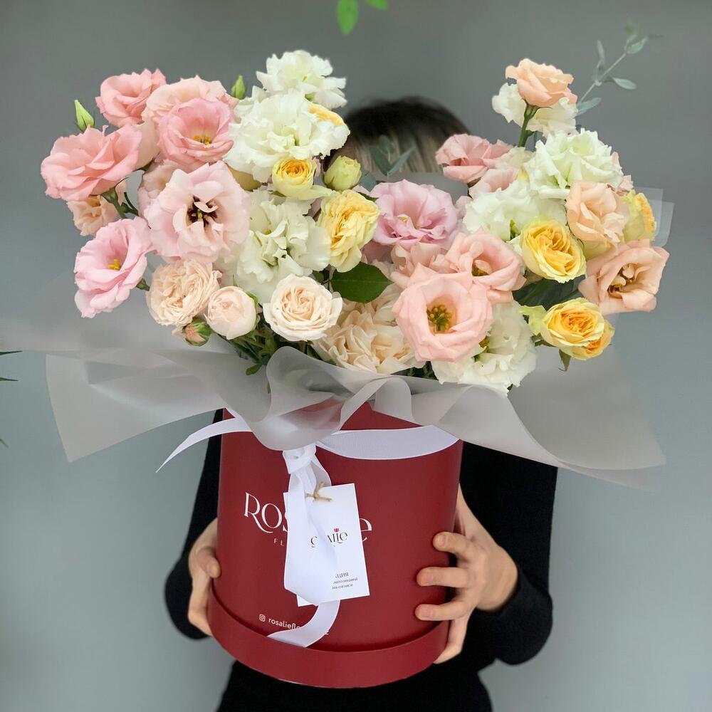 Альстромерии, Гвоздики, Кустовые розы, Лизиантусы, Розы, Хризантемы