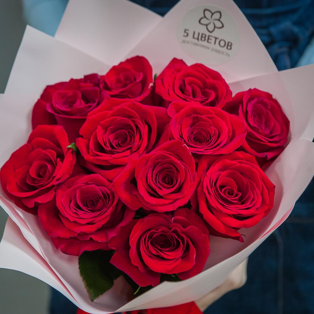 розы – 11 шт.Атласная лента – 1 шт.Матовая пленка – 1 шт.