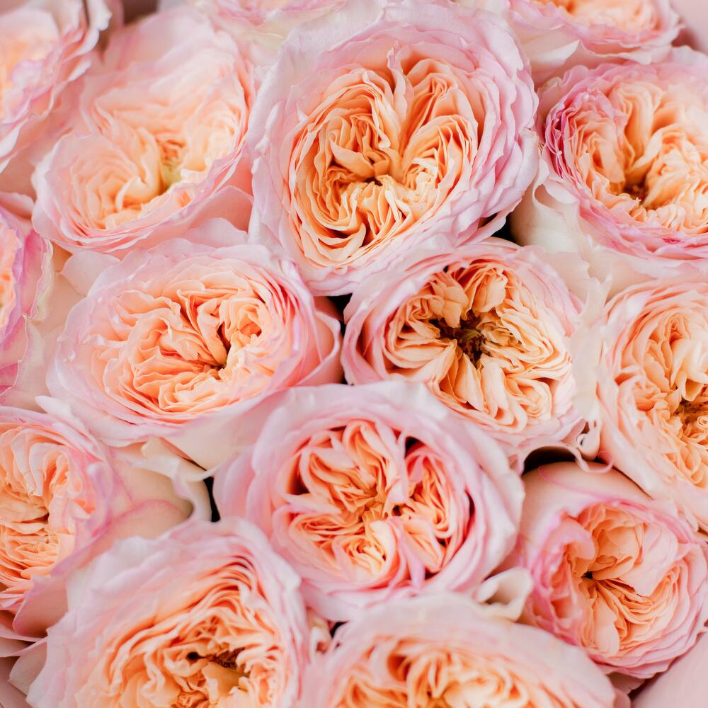 Букет из 15 персиковых пионовидных роз Flash Back 40 см в упаковке