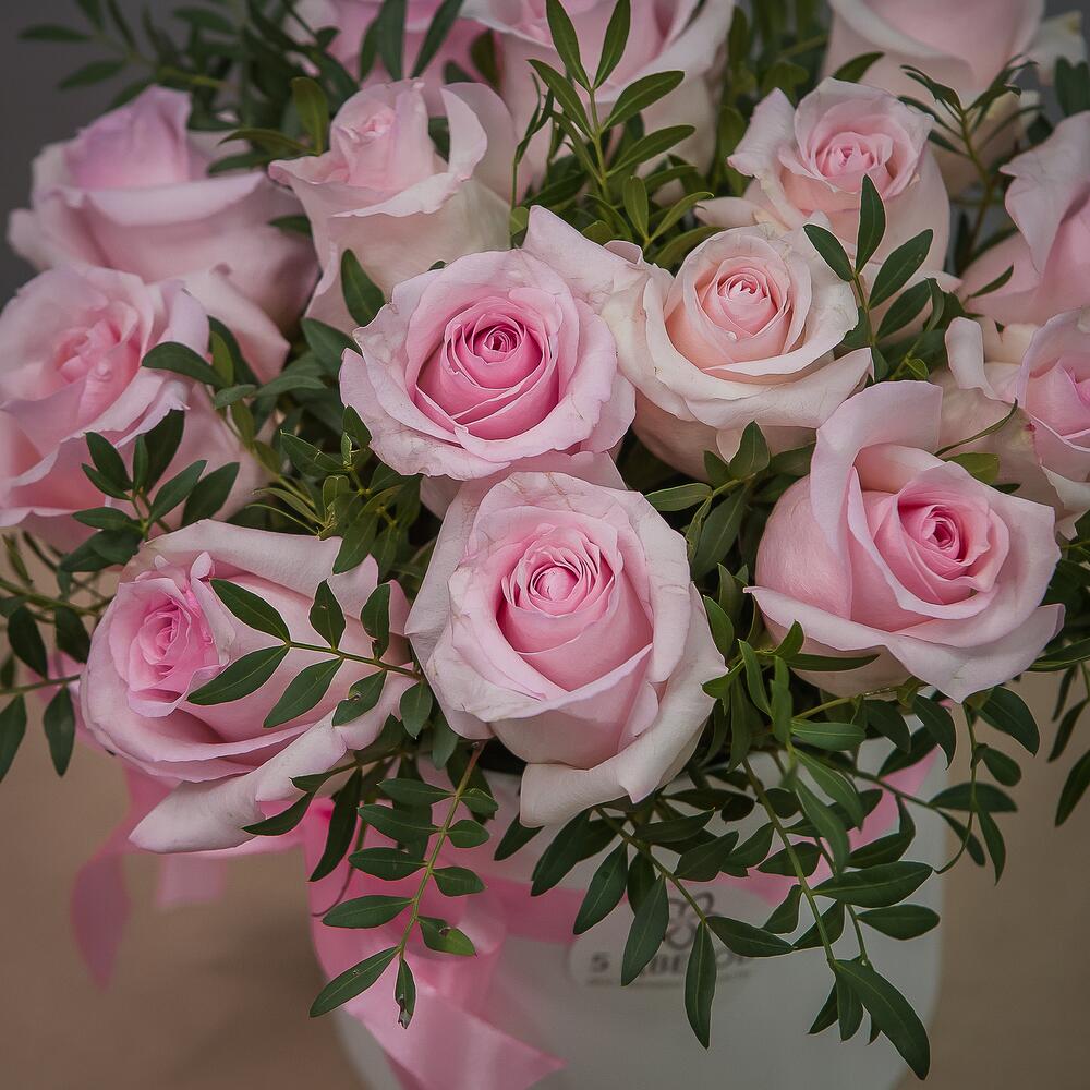 Букет из нежно-розовых роз в коробке