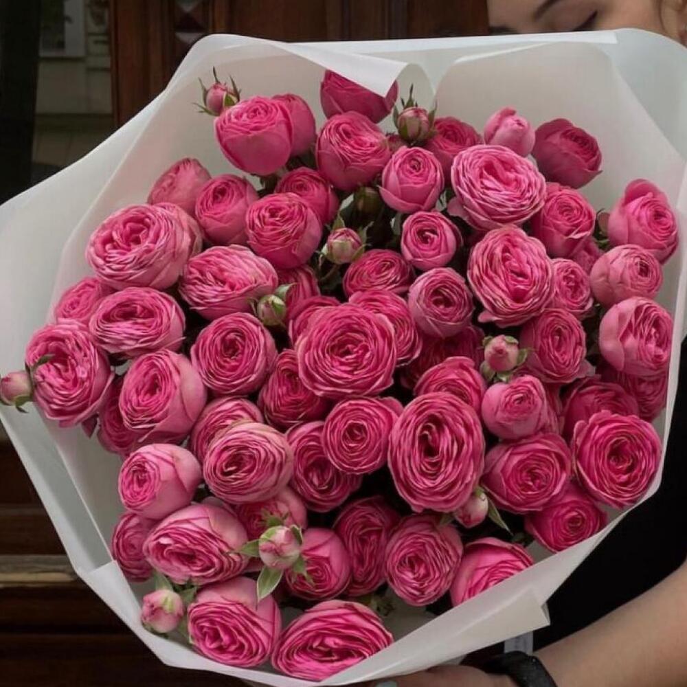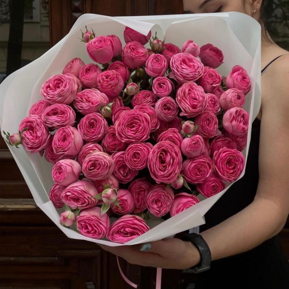 Роза пионовидная кустовая – 35 шт.Упаковка дизайнерская – 1 шт.Лента атласная – 2 шт.Открыточка с вашими пожеланиями – 1 шт.хорошее настроение – 100 шт.инструкция по уходу за цветами – 1 шт.коробка переноска – 1 шт.Кризал – 1 шт.