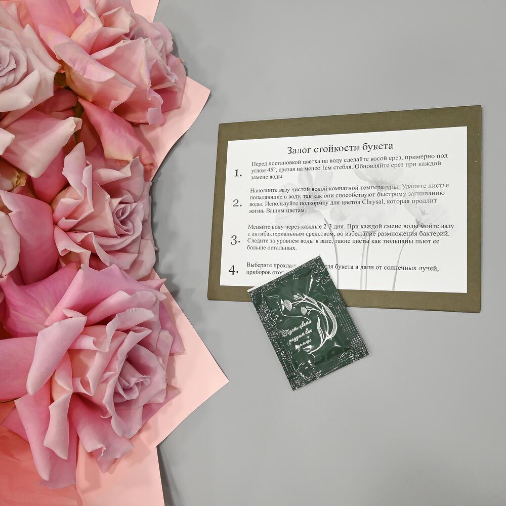 - Сроки возврата: Претензии по качеству букета принимаются в течение 24 часов с момента его получения.