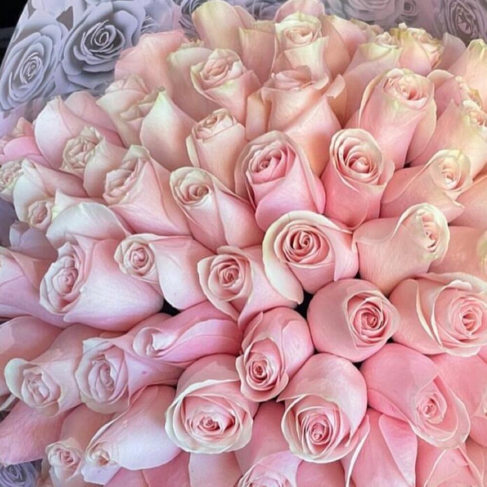 Роза розовая – 35100 шт.Упаковка дизайнерская – 1 шт.Лента атласная – 2 шт.Открыточка с вашими пожеланиями – 1 шт.хорошее настроение – 100 шт.инструкция по уходу за цветами – 1 шт.коробка переноска – 1 шт.Кризал – 1 шт.