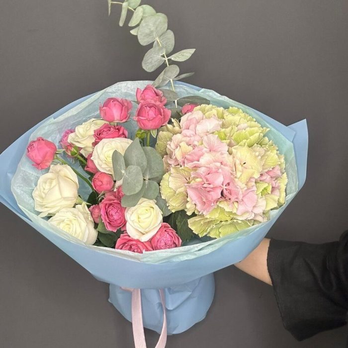Гвоздики, Кустовые розы, Лизиантусы, Пионовидные розы, Розы