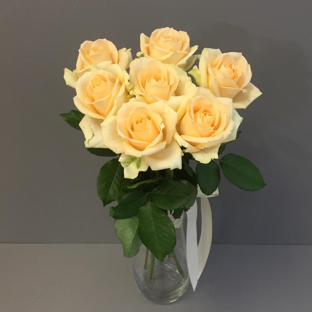 Роза аваланж пич 50 см – 7 шт.Лента атласная – 1 шт.Аквабокс – 1 шт.коробка транспортировочная – 1 шт.