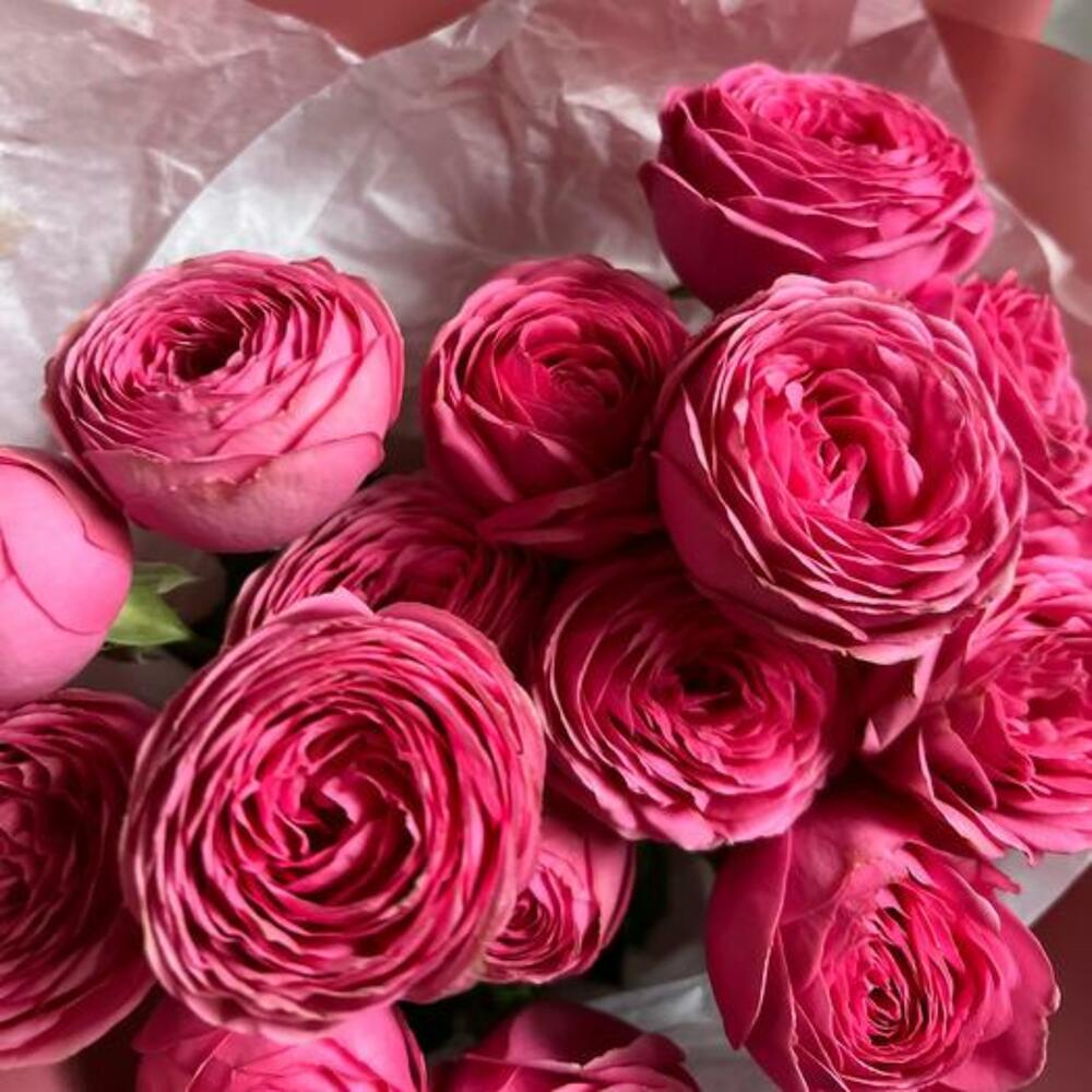 Букет из кустовой пионовидной розы “Малиновый фрэш”
