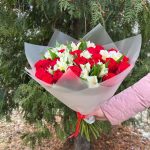 Роза красная – 25 шт.Альстромерия – 7 шт.Пленка матовая – 2 шт.