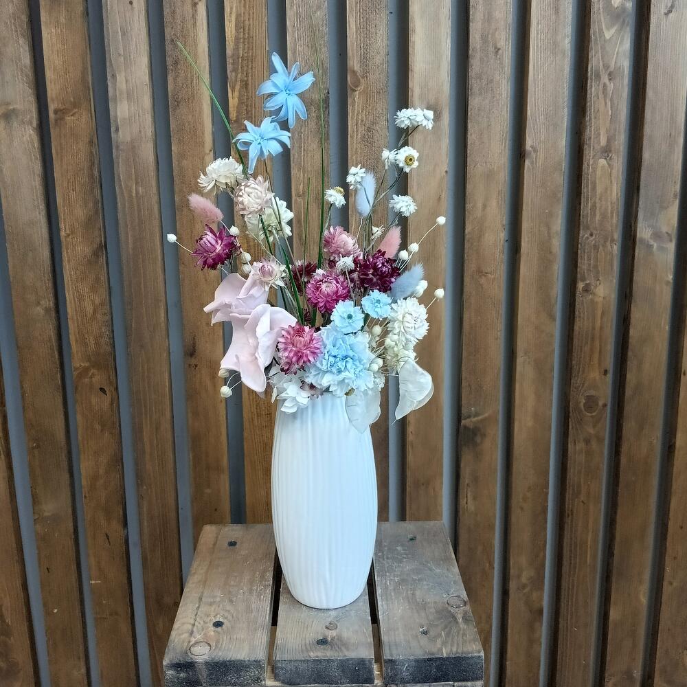Букет из стабилизированных цветов и сухоцветов в вазе