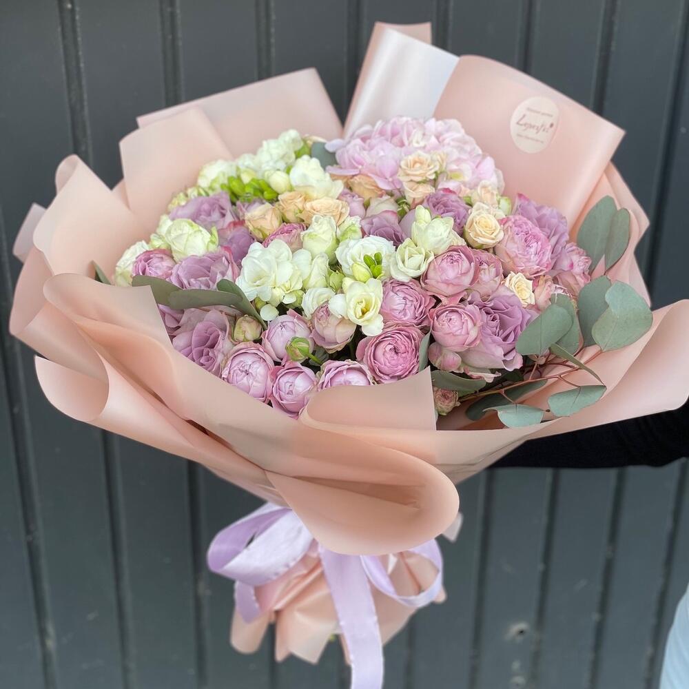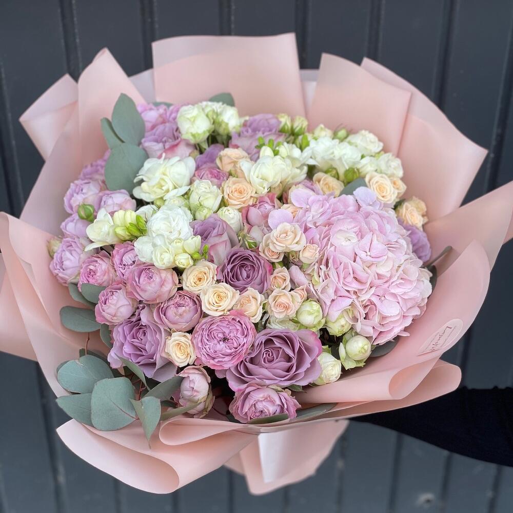 Гортензии, Кустовые розы, Лизиантусы, Пионовидные розы, Розы