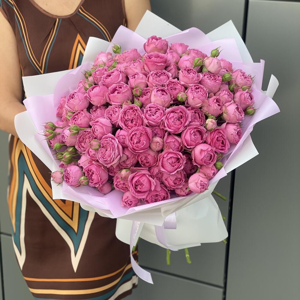 Букет из кустовых пионовидных роз в оформлении!
