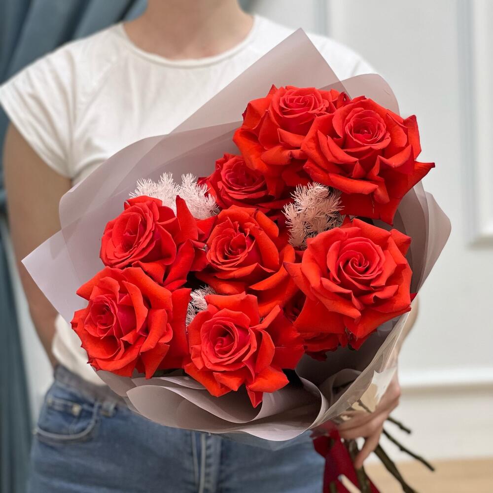 Букет шикарных алых роз 9 шт «Притягательный»