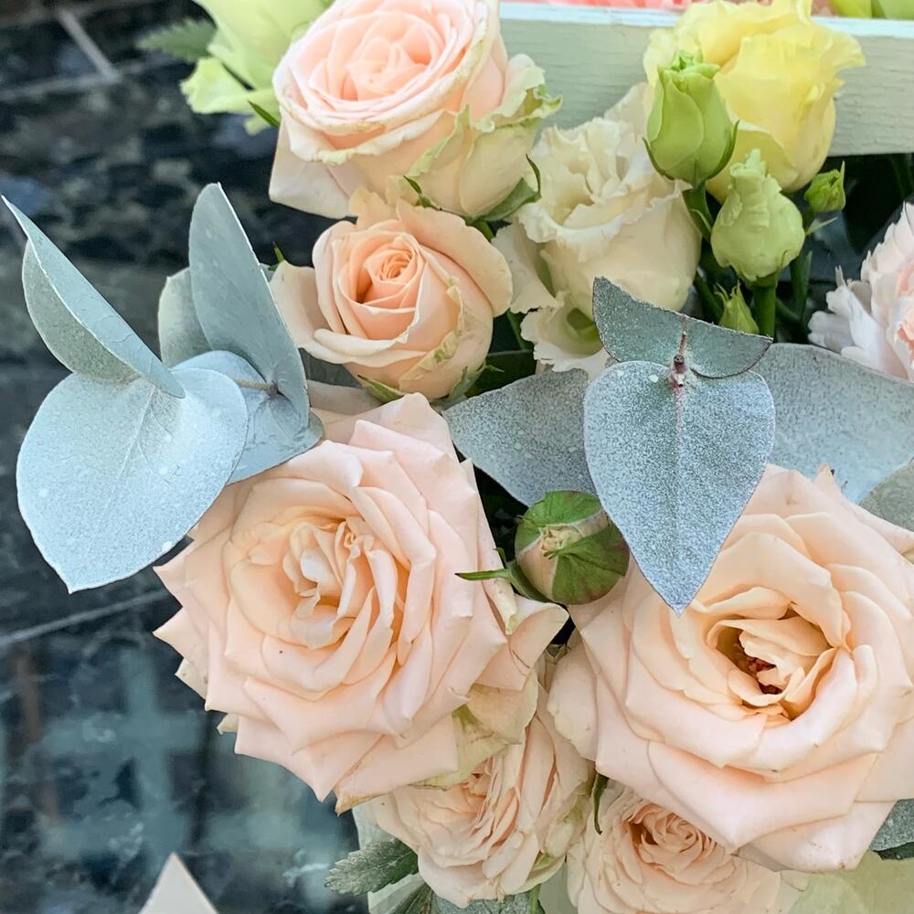 “Эвкалиптическая роскошь” гортензия и пионовидная кустовая роза