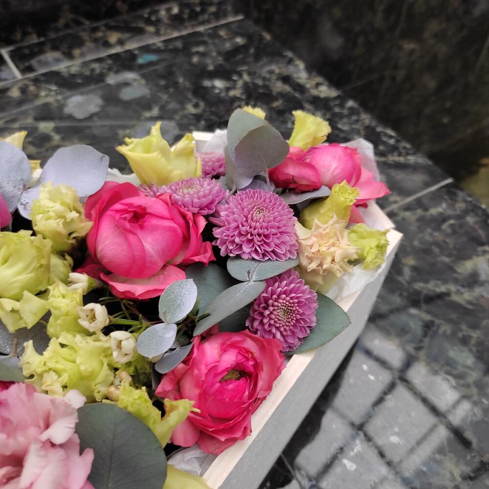 Цветочная композиция в деревянном ящике