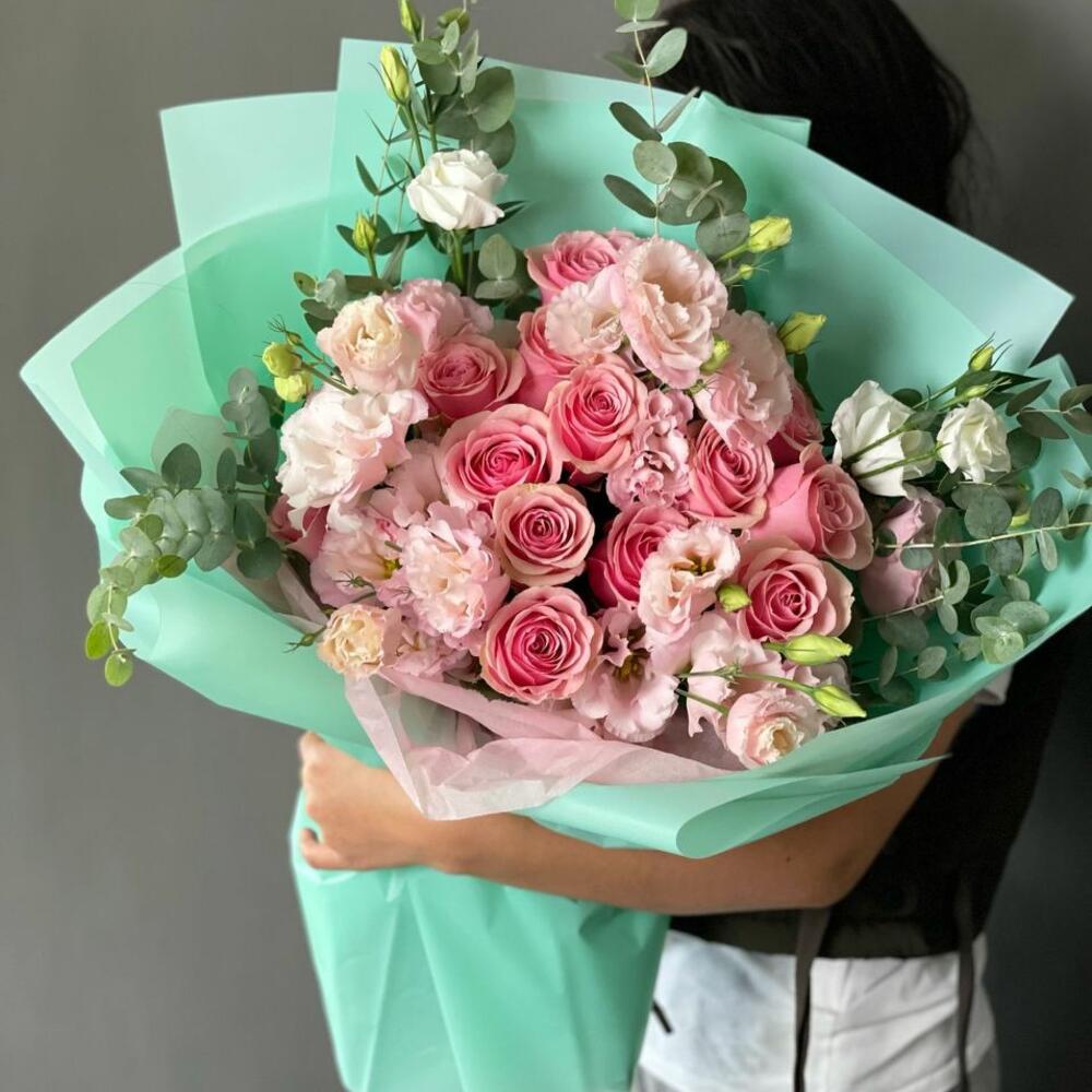 Кустовые розы, Лизиантусы, Розы, Сухоцвет