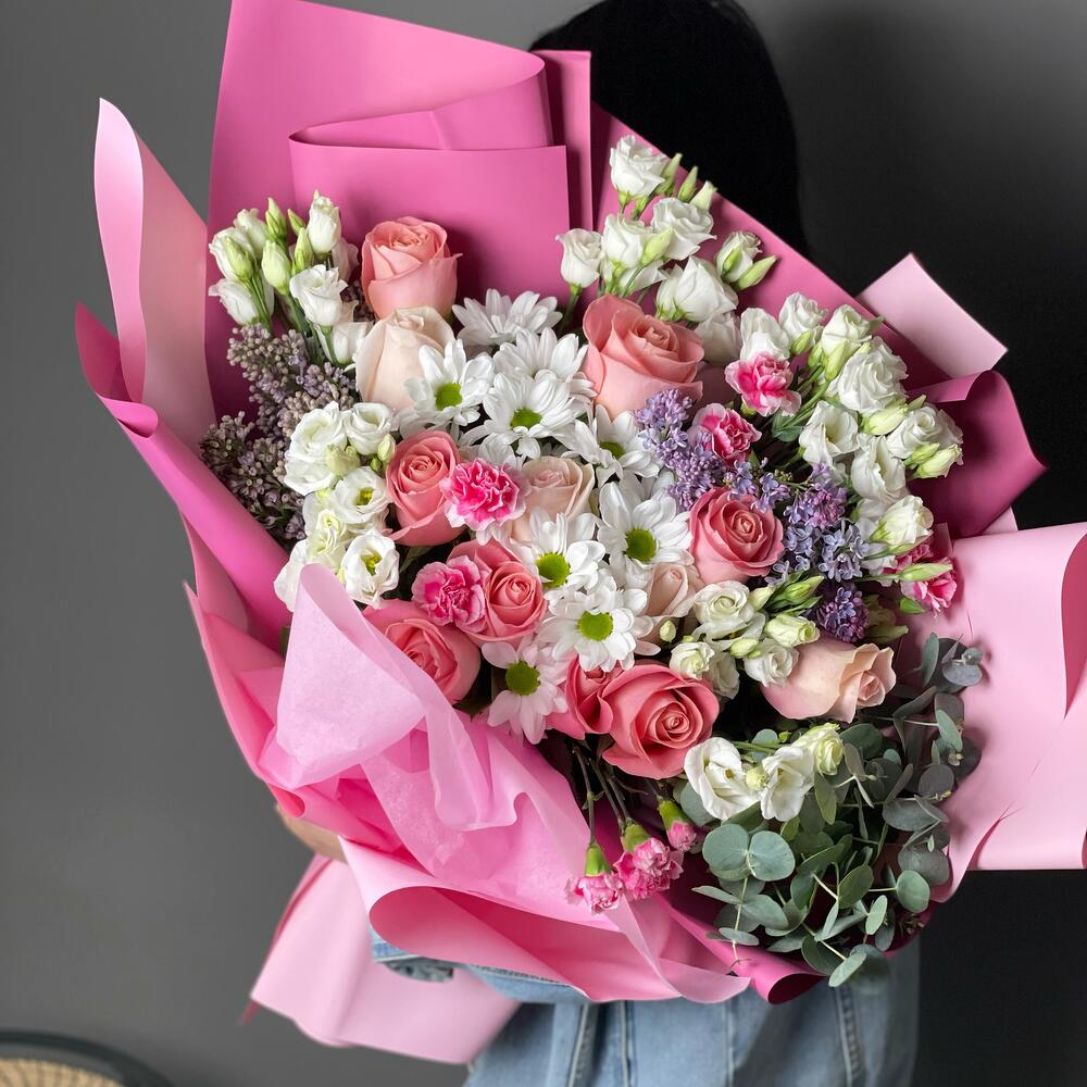 Гвоздики, Кустовые розы, Лизиантусы, Пионовидные розы, Розы