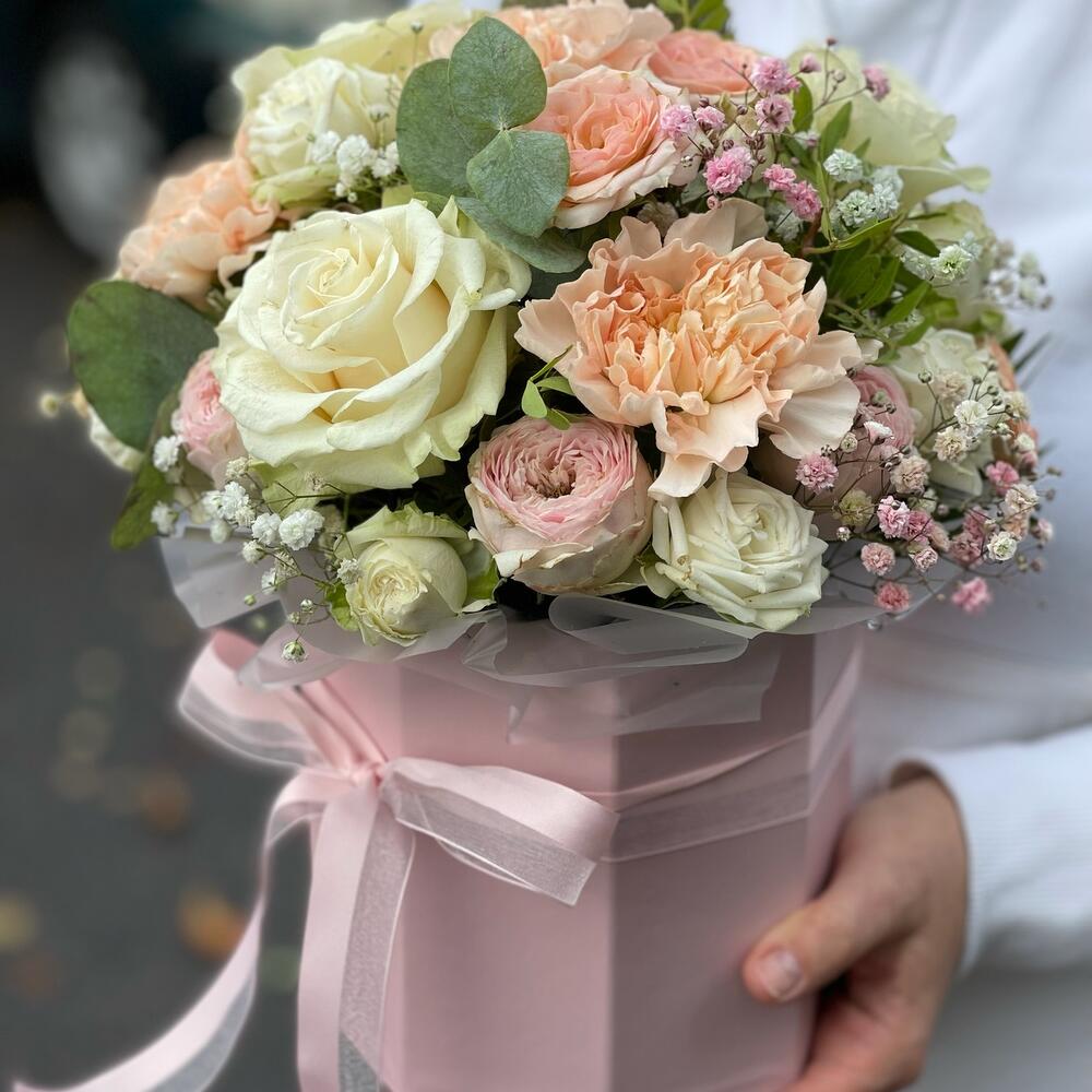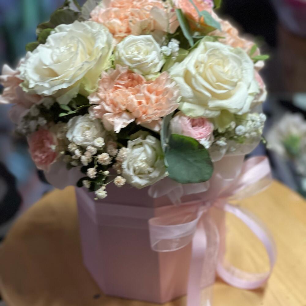 Гвоздики, Кустовые розы, Пионовидные розы, Розы