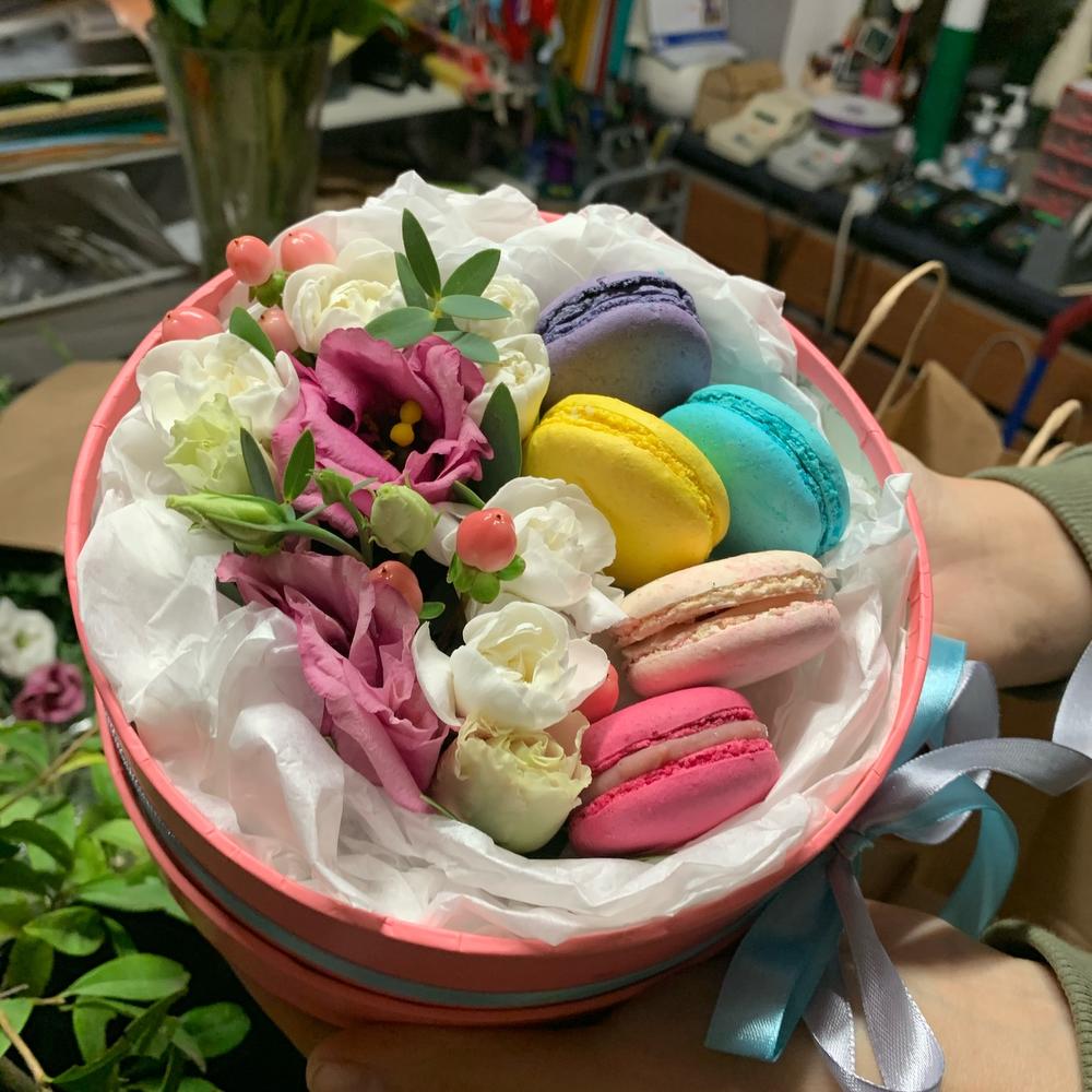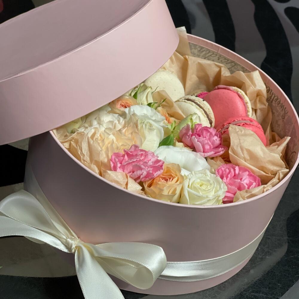Коробка любой формы с живыми цветами и любыми сладостями- прекрасный комплимент для поздравления.