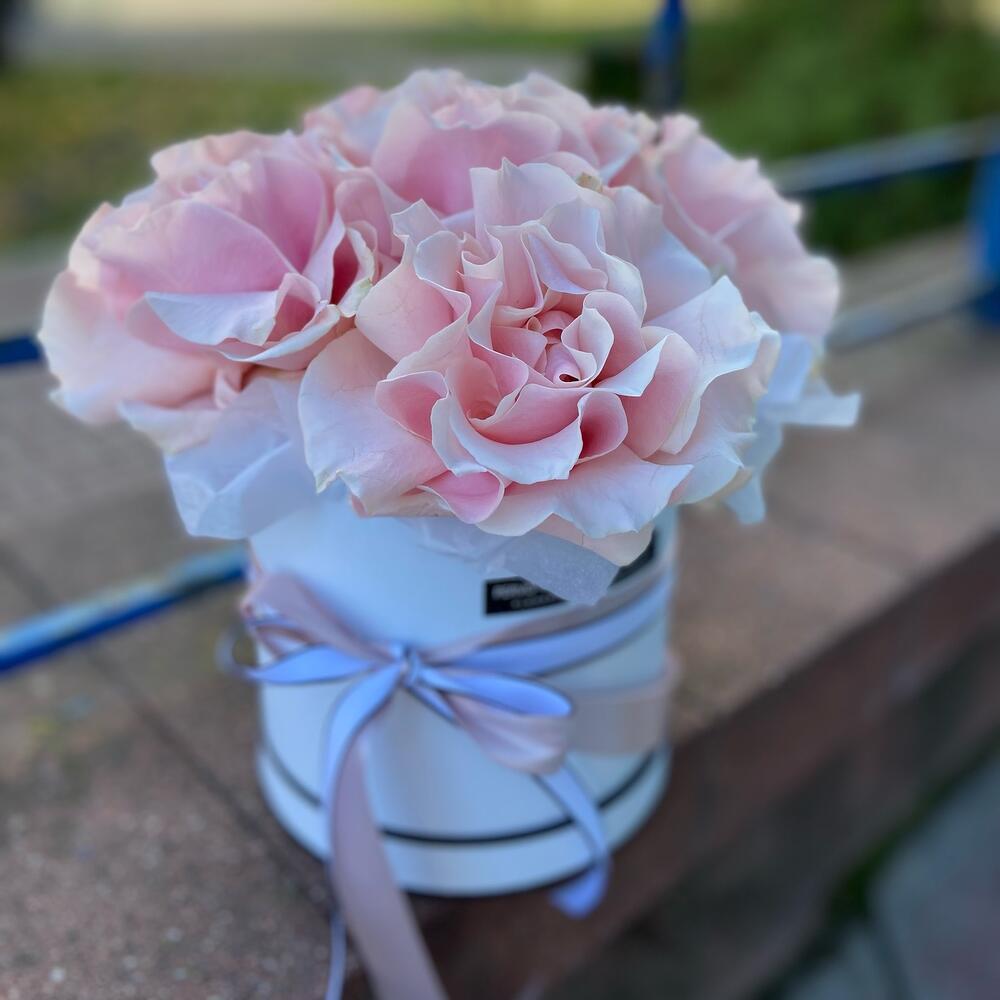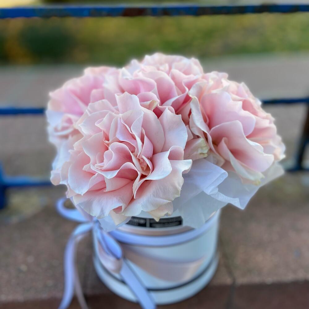 Композиция из французских роз в шляпной коробке