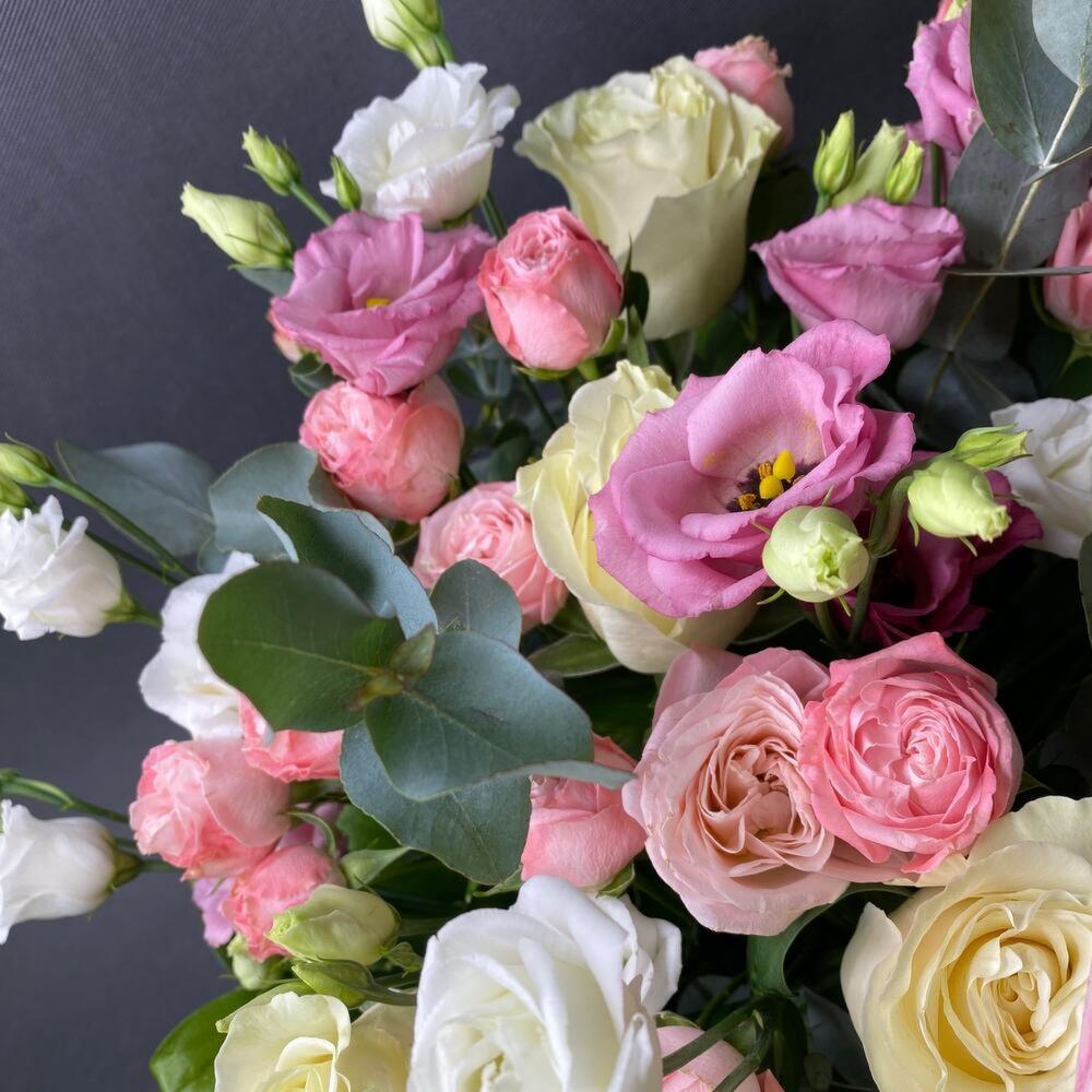 Корзина из пион роз и лизиантуса «Lady s»
