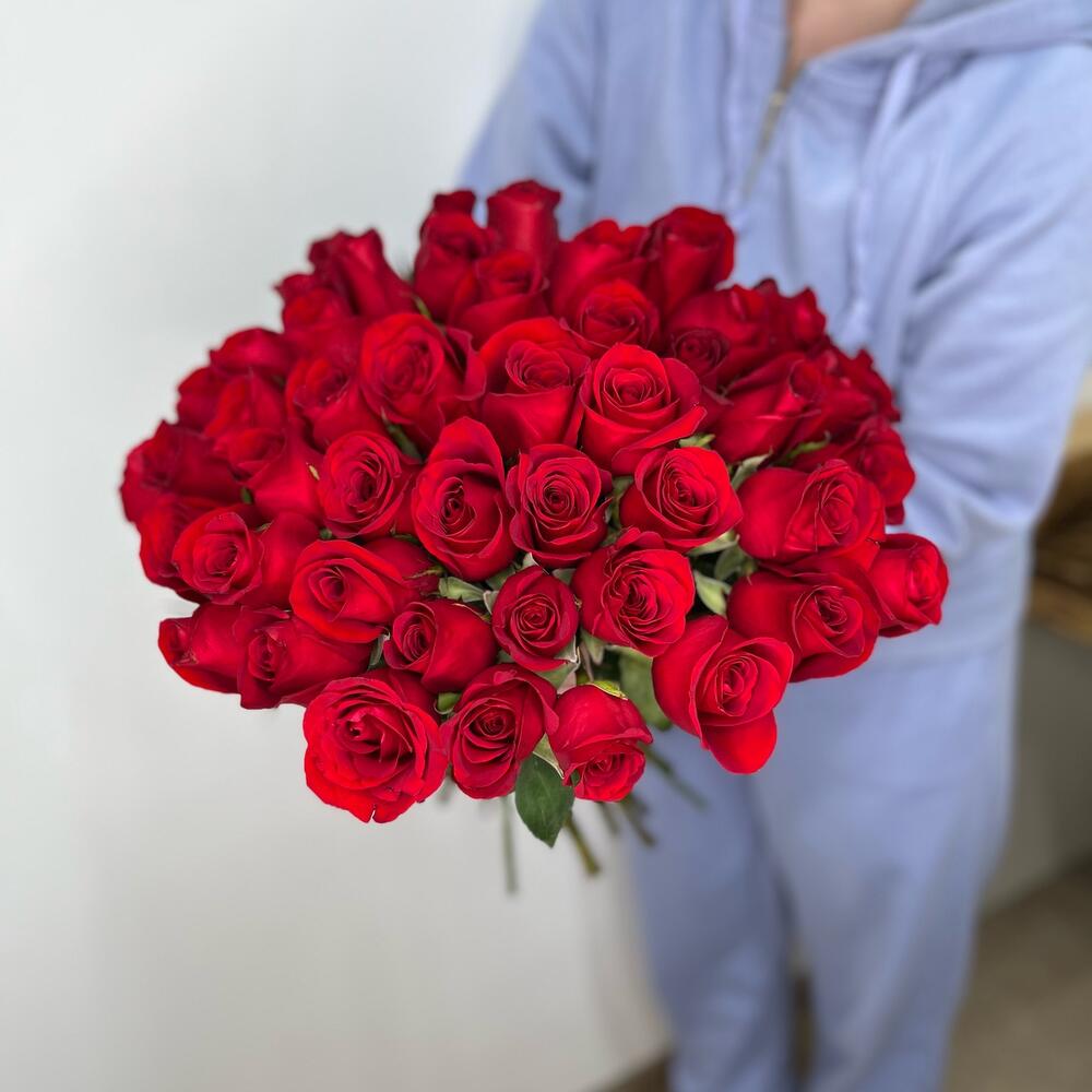 Атласная лента – 1 шт.Роза красная 40 см – 39 шт.