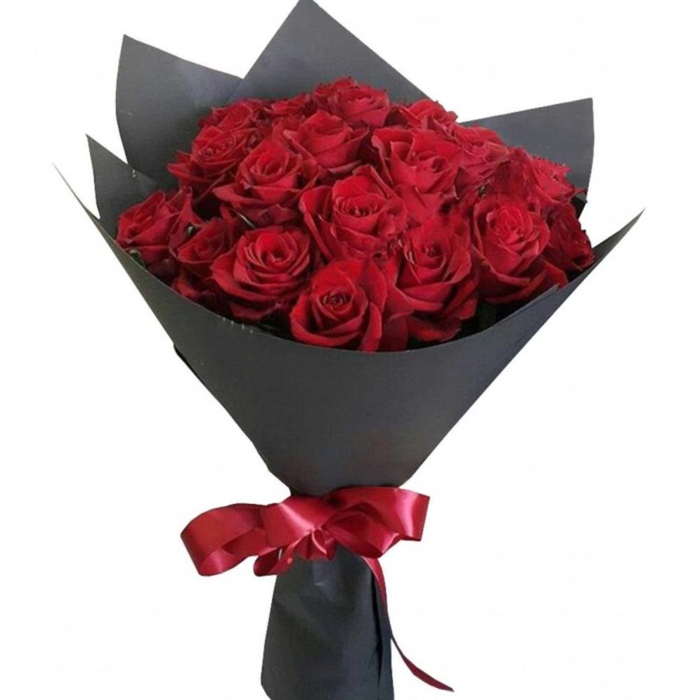 Упаковка – 1 шт.Атласная лента – 1 шт.Красная роза – 21 шт.
