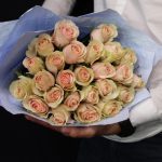 роза фруттето – 25 шт.Крафт дизайнерский – 2 шт.Лента атласная – 1 шт.