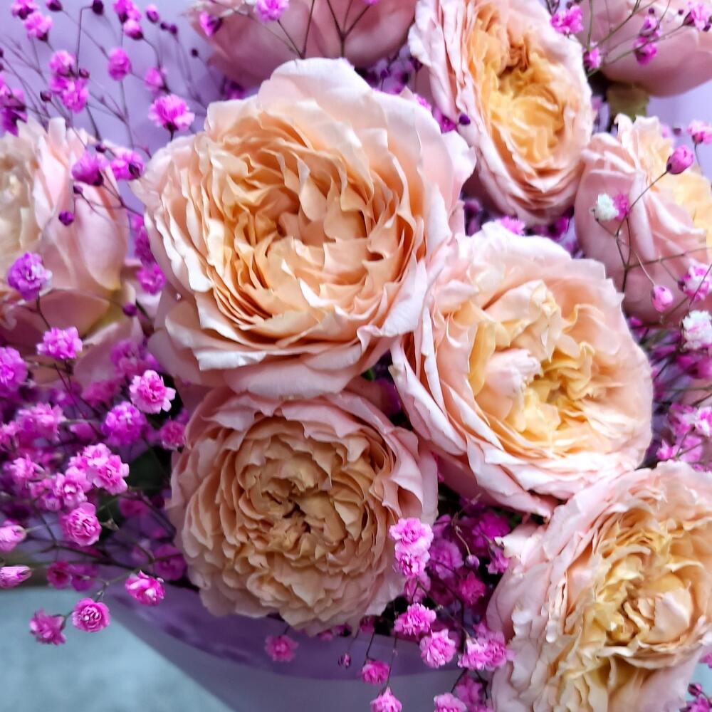 Категории: Гипсофила, Кустовые розы, Пионовидные розы, Розы