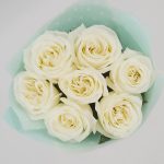 Милый букет из нежнейших белых роз в стильной упаковке. Такой букет всегда уместен и подойдёт для любого повода: День Рождения, именины, годовщина свадьбы, рождение ребенка, 8 марта, День Святого Валентина, выпускной и т.д. Можно вручить маме, сестре, подруге, коллеге, любимой.
