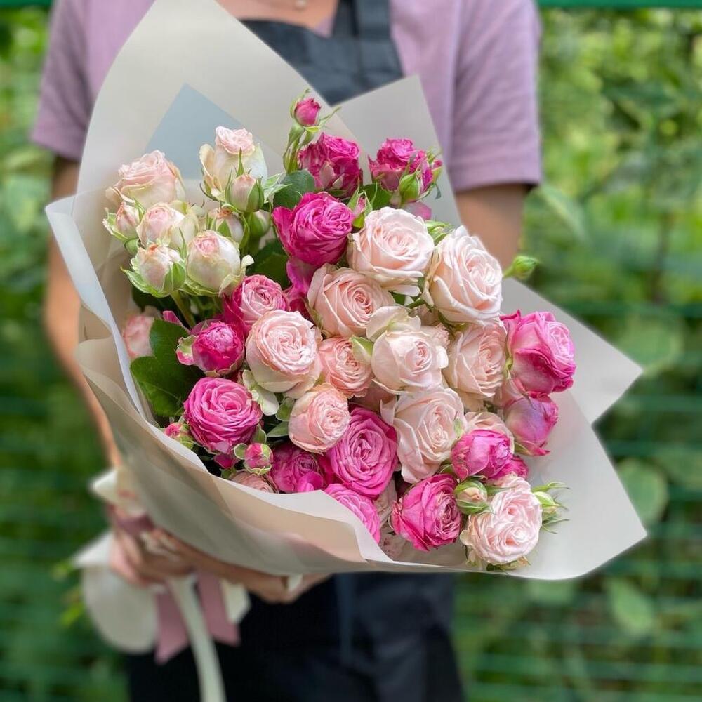Гвоздики, Кустовые розы, Пионовидные розы, Розы
