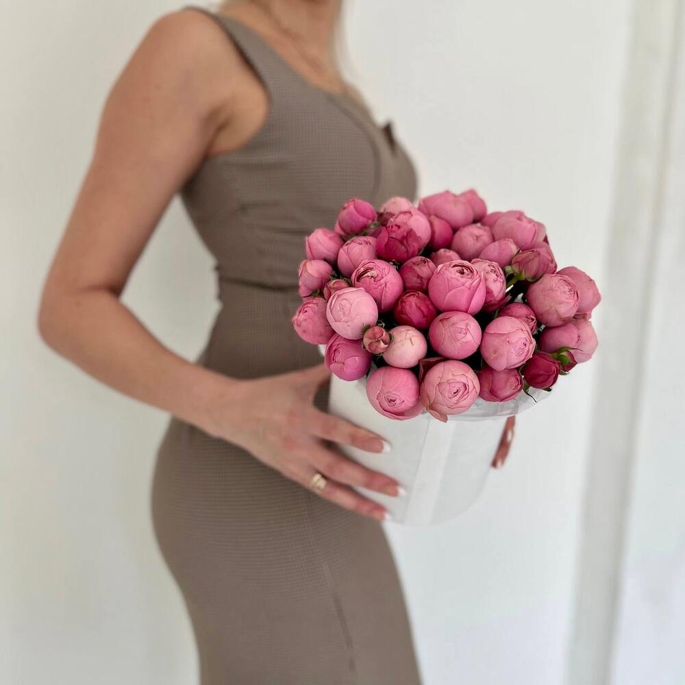 Пионовидные розы в шляпной коробке