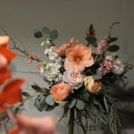 Пионовидные розы, цветущая айва, амариллис, орнитогалум, эвкалипт и маттиола.Стильное цветочное решение для любого случая.