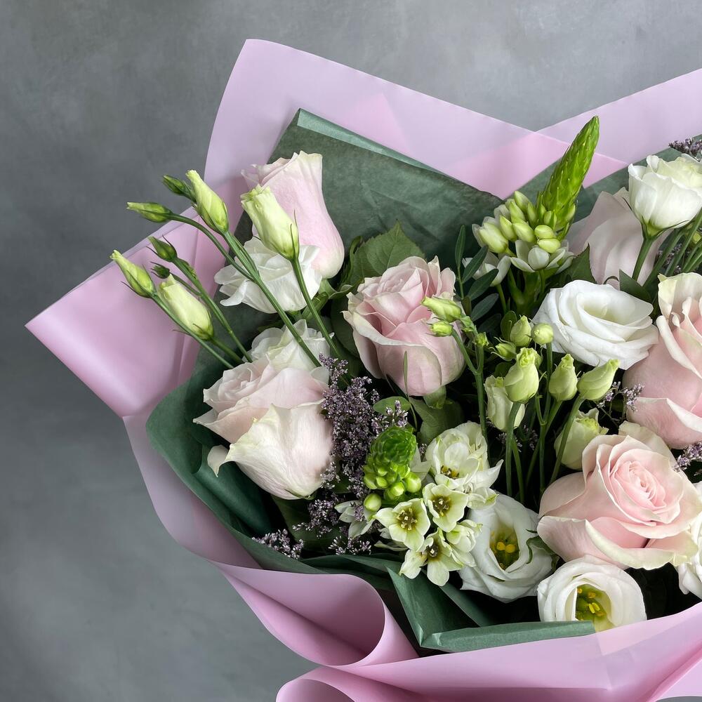 Альстромерии, Кустовые розы, Лизиантусы, Пионовидные розы, Розы, Ромашки