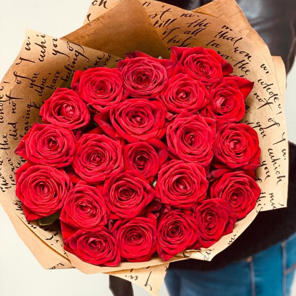 розы 21 штт эквадор – 21 шт.Крафт – 2 шт.Лента атласная – 1 шт.