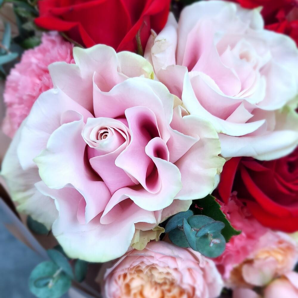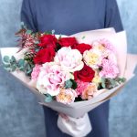 Гвоздики, Кустовые розы, Пионовидные розы, Розы