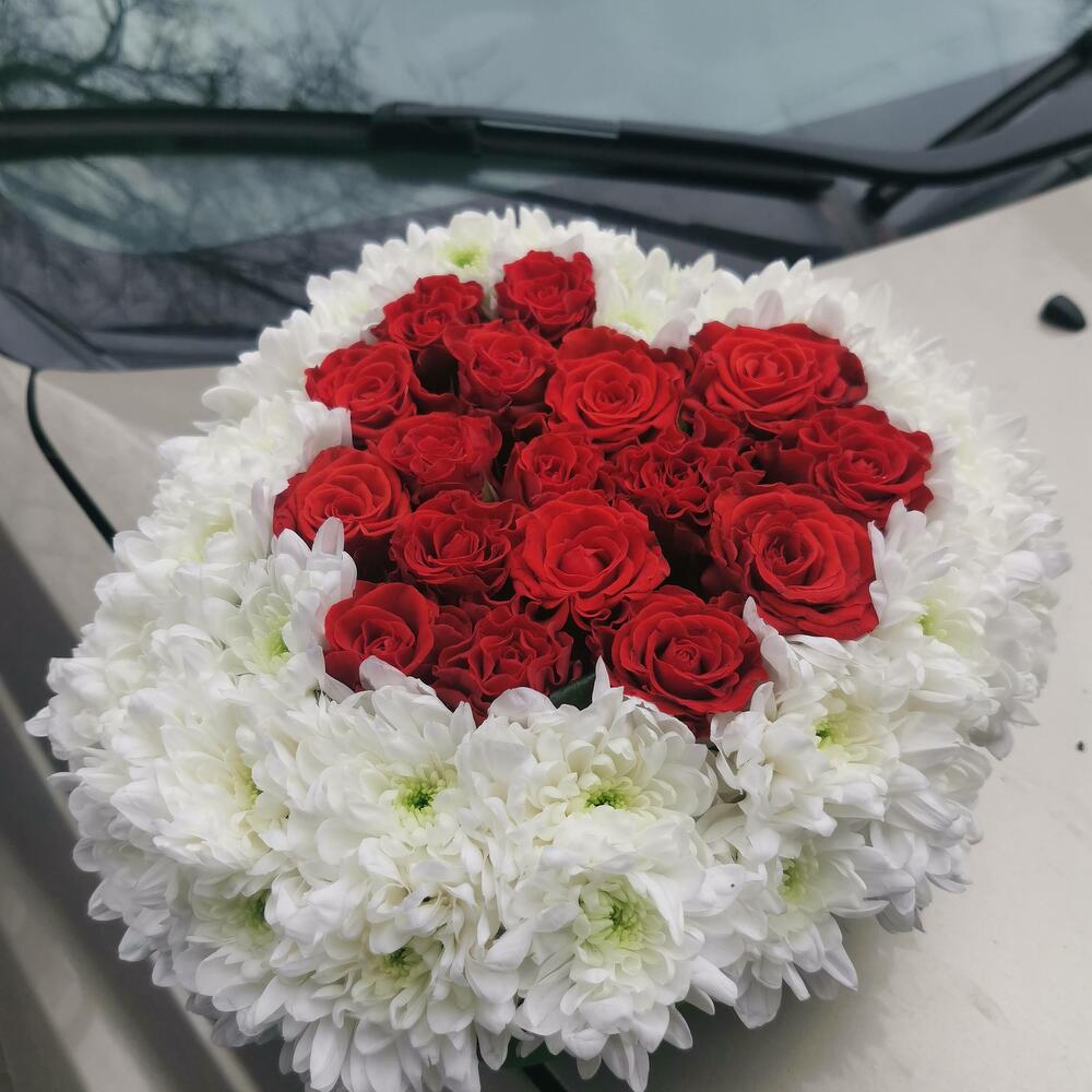 Сердце из роз и хризантем