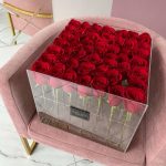 Роза Эквадор – 49 шт.Стеклянный куб – 1 шт.