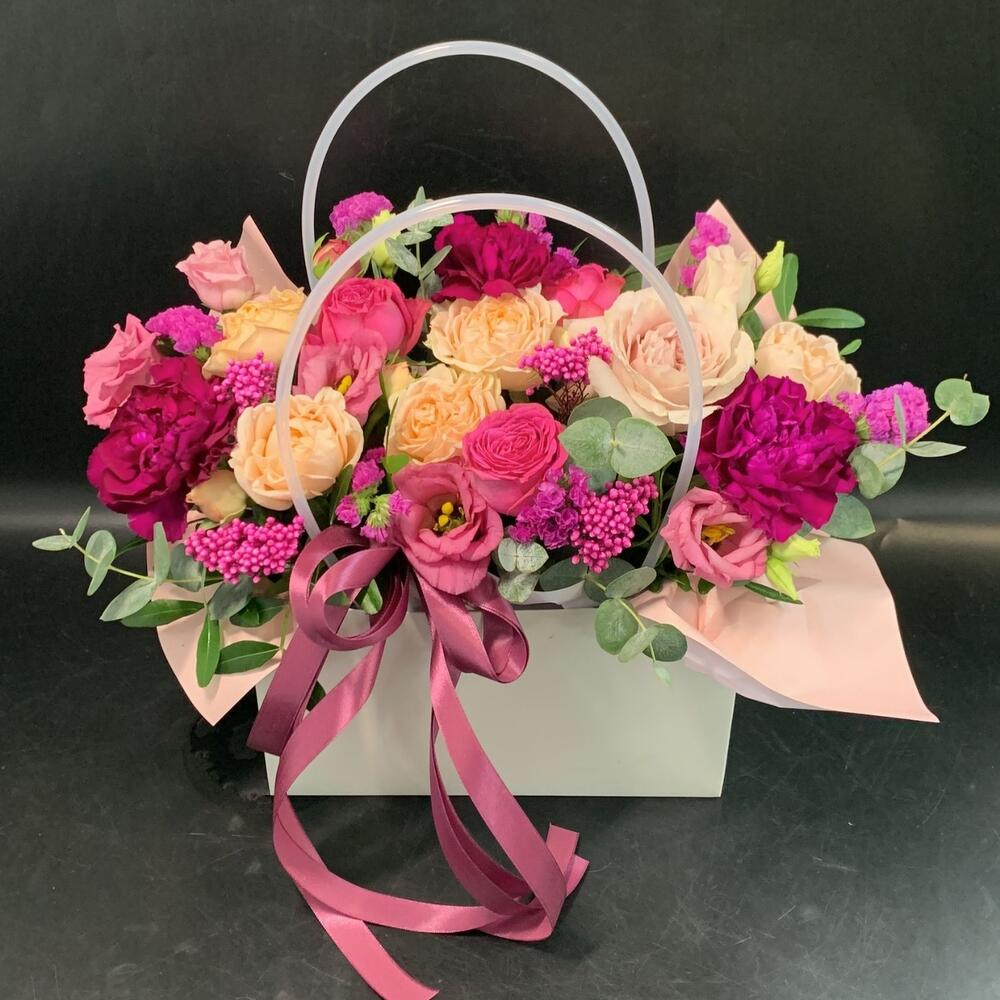 Гвоздики, Кустовые розы, Пионовидные розы, Розы