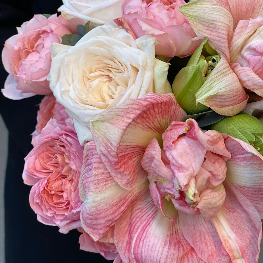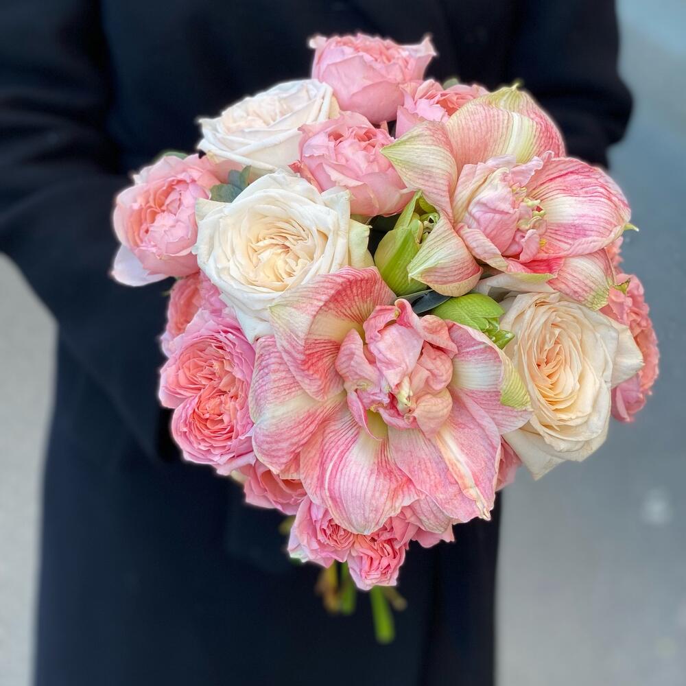 Альстромерии, Кустовые розы, Лизиантусы, Пионовидные розы, Розы, Ромашки