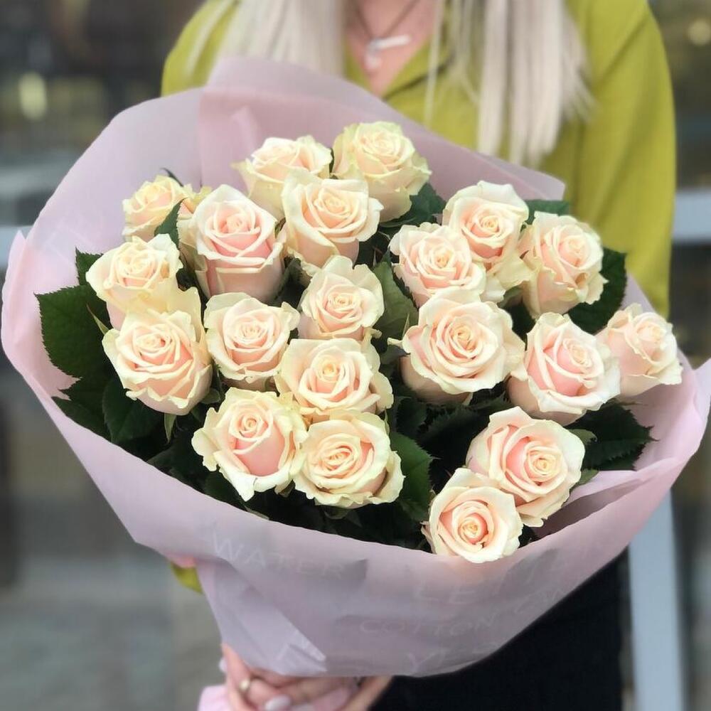 Талея роза – 19 шт. Упаковка дизайнерская – 2 шт. Открыточка с вашими пожеланиями – 1 шт.