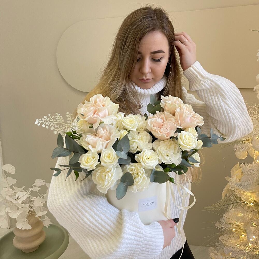 “В твоих глазах”: нежная шляпная коробка с французскими розами
