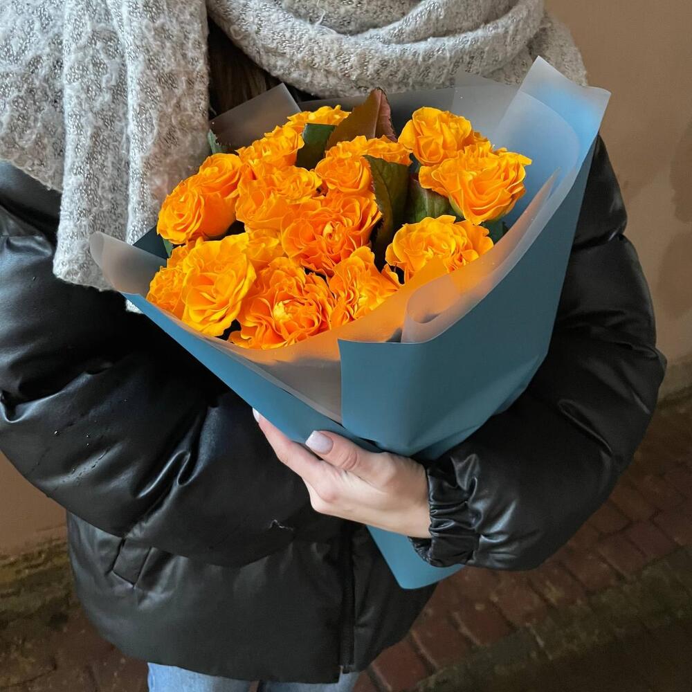 Авторская упаковка – 1 шт.роза оранжевая россия – 13 шт.