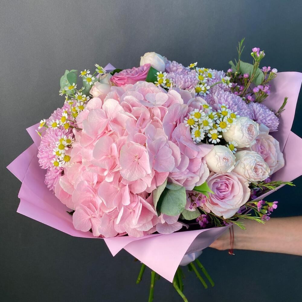 Категорий: Альстромерии, Гортензии, Кустовые розы, Пионовидные розы, Розы, Хризантемы