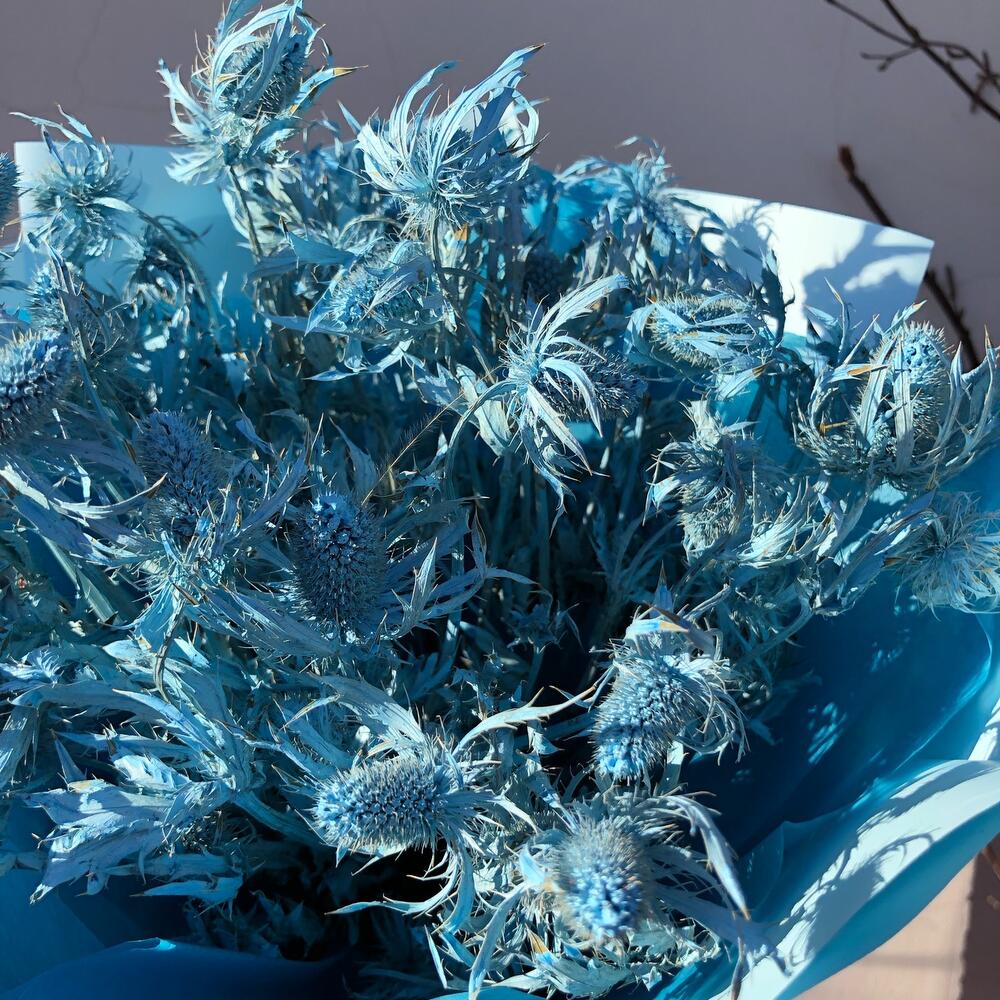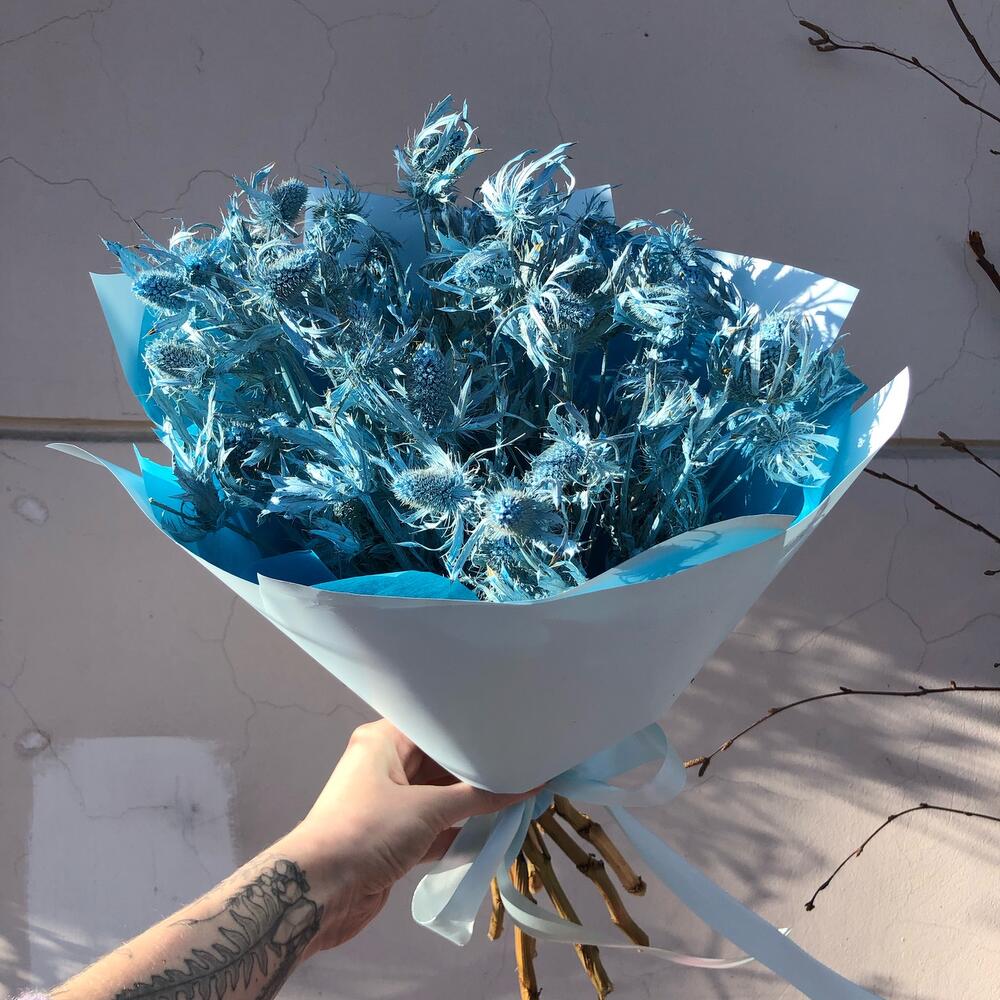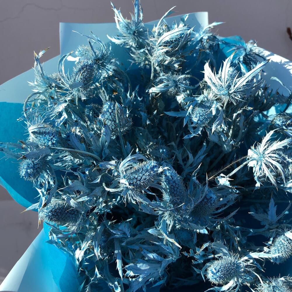 Упаковка – 2 шт.Лента атласная – 1 шт.эрингиум сухоцвет крашеный – 9 шт.