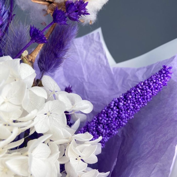 Букет из сухоцветов в лавандовых оттенках с хлопком