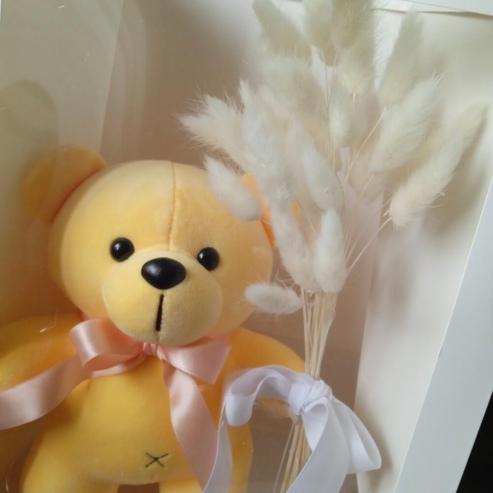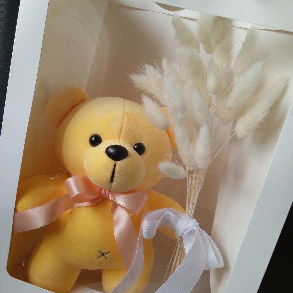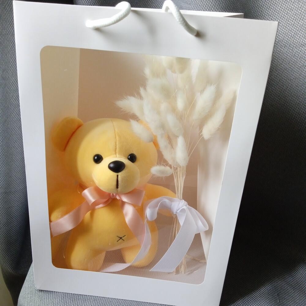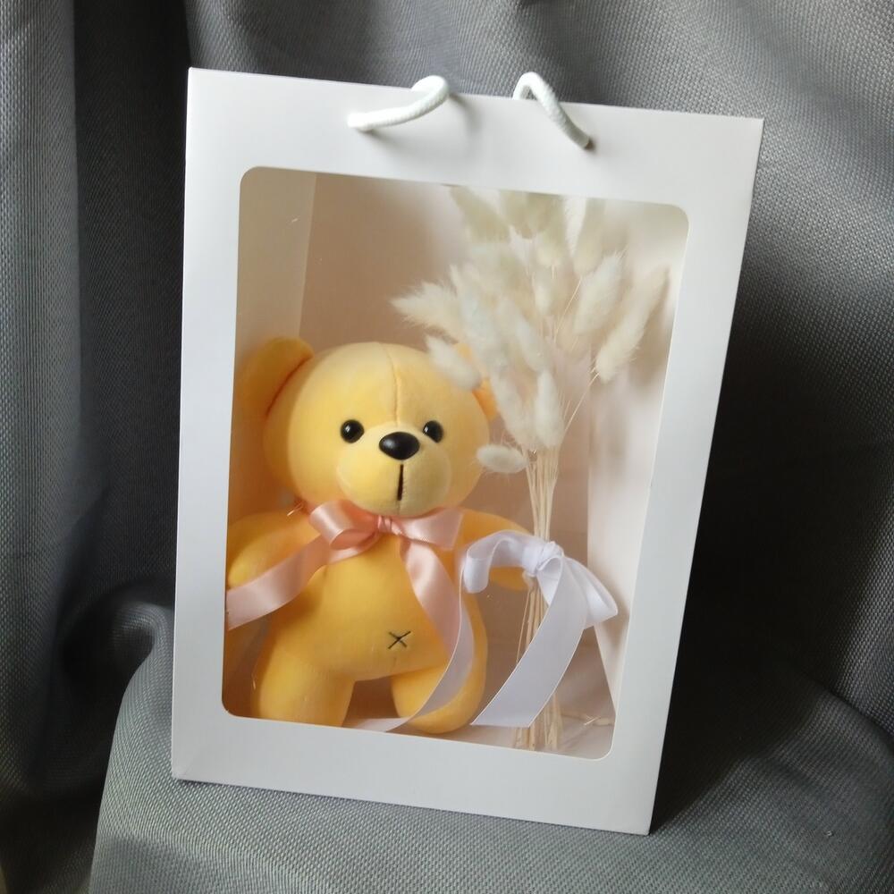 Мишка плюшевый – 1 шт.Лагурус – 50 гр.Пакет подарочный – 1 шт.