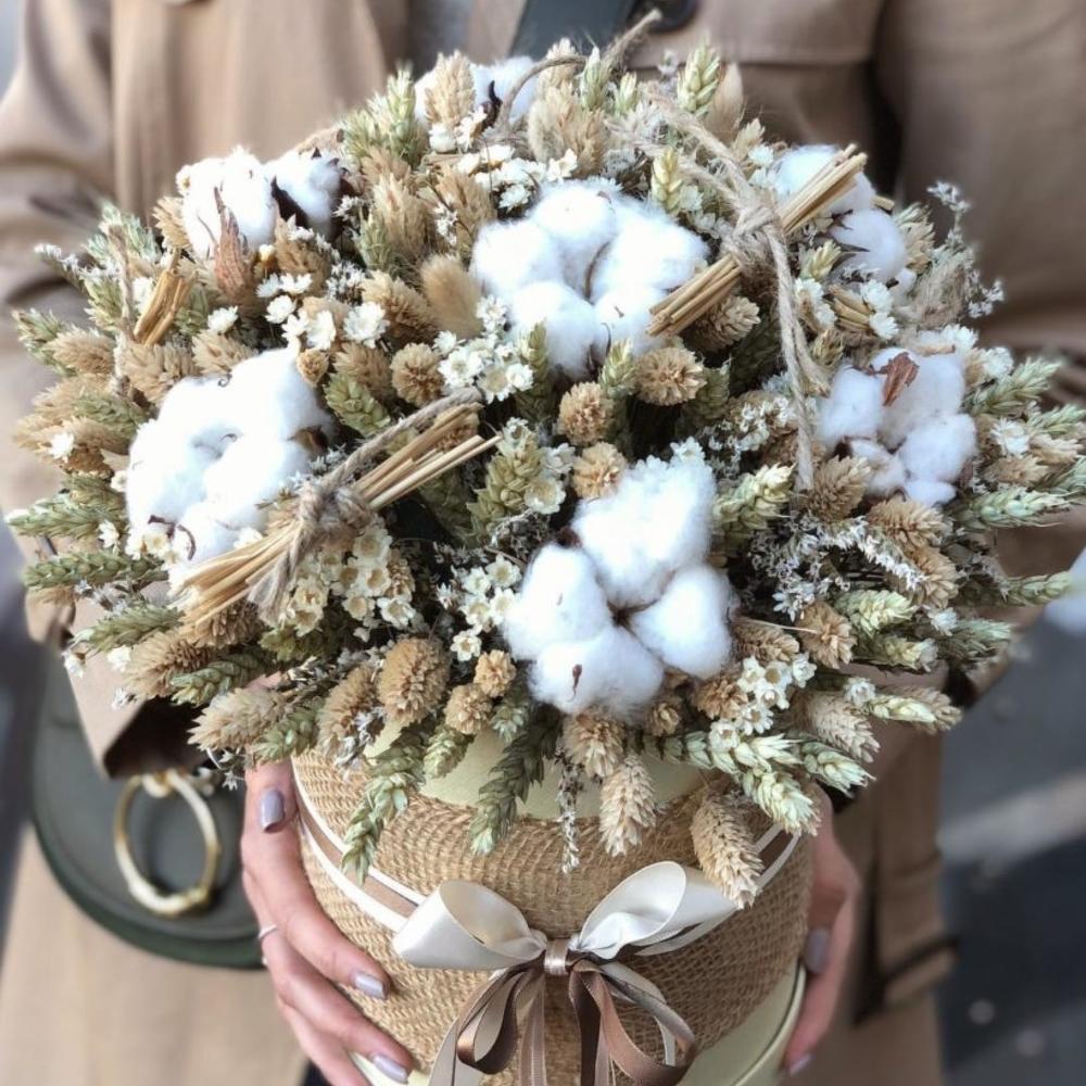 Потрясающая коробочка с модными в этом сезоне сухоцветами ! Шляпная коробка отлично подойдёт для любого интерьера ! Отличный вариант вечного букета ) ведь такая композиция не требует ухода и простоит долгие годы , напоминая о Вас ) Это идеальный подарок для любой хозяйки … Показать ещё. Дарите цветы без повода ! Создавайте хорошее настроение .
