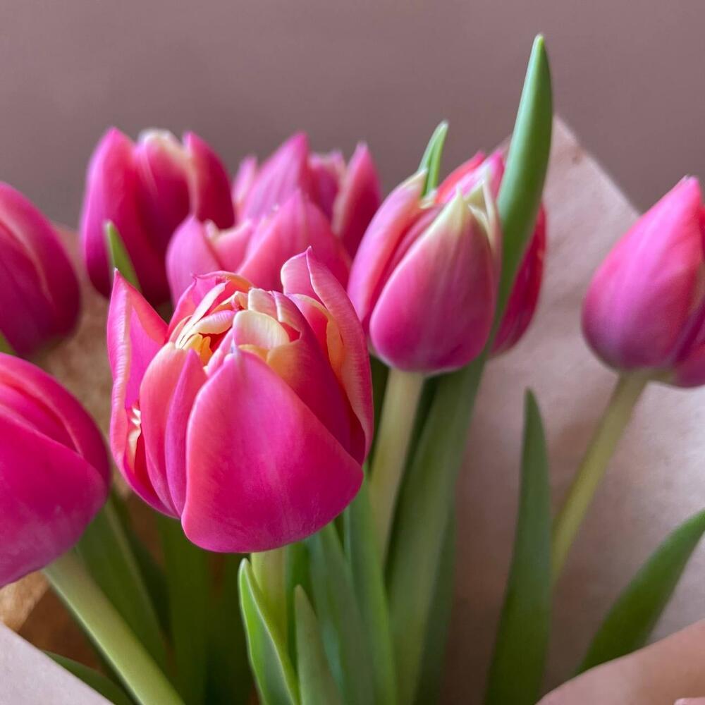 Крафтовая упаковка – 1 шт.Розовый пионовидный тюльпан – 13 шт.