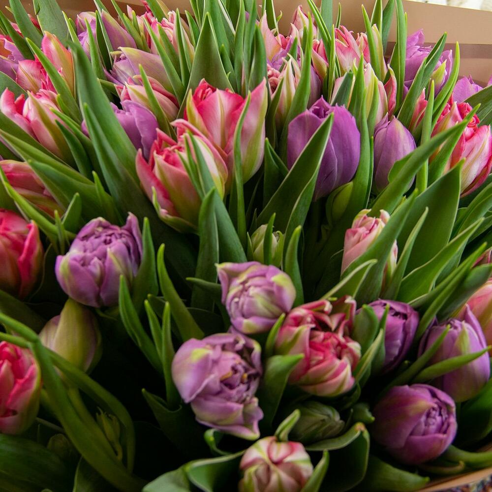 25 пионовидных сиреневых тюльпанов дабл прайс. Букет 200 Kimbirly Flowers