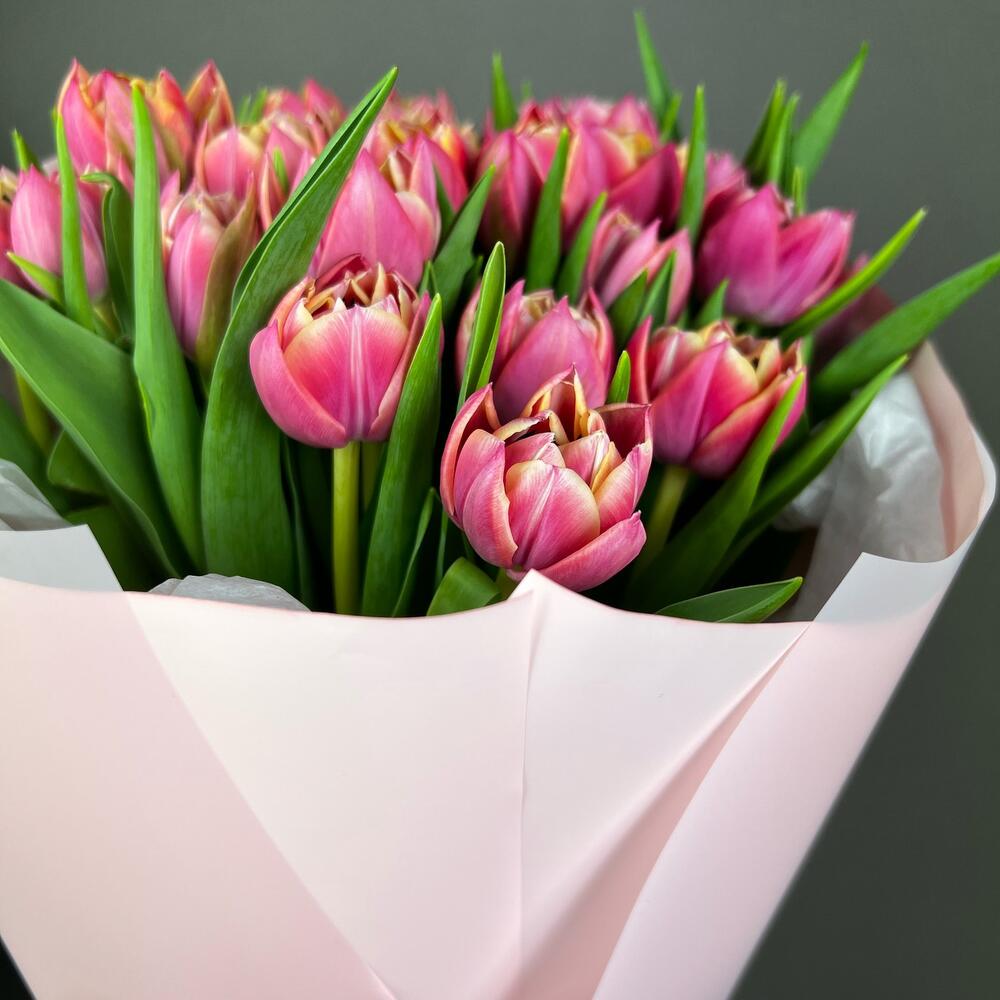 Тюльпан – 25 шт.Лента атласная – 1 шт.Бумага тишью – 1 шт.пленка калька – 1 шт.
